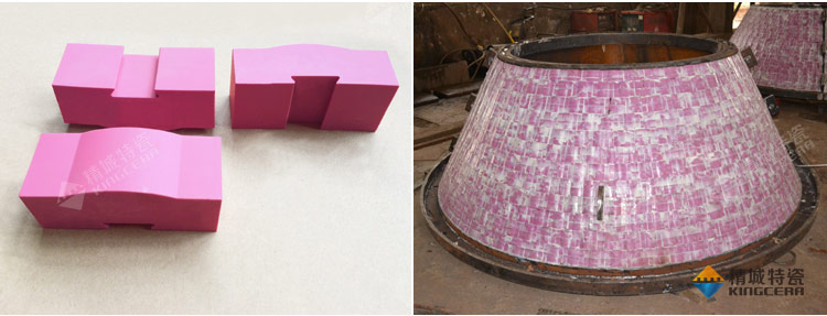 5、粘接牢固、不易脫落:精城耐磨陶瓷片可采用耐高溫無機粘合劑粘貼、拱接和螺柱焊接等多種固定方式,可以確保陶瓷片在高溫、高沖擊條件下長期運行不脫落。