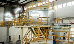 壓力噴霧干燥的原理是空氣經過濾和加熱后進入干燥器頂部的空氣分配器,使得熱空氣呈螺旋狀均勻地進入干燥室。料液經塔體底部的高壓噴槍霧化成極霧狀液珠,與熱空氣并流接觸,在極短的時間內可干燥為成品。成品連續地由干燥塔底部和旋風分離器中輸出,廢氣由風機排空。