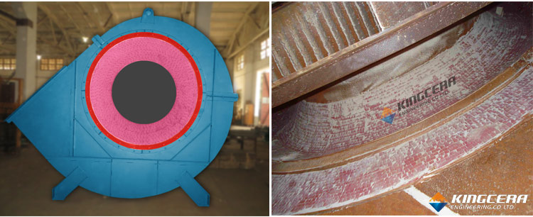 3. 燕尾裝卡式:燕尾裝卡式是將兩條梯形鋼條平行焊接在設備上,形成燕尾槽,然后將燕尾陶瓷穿進燕尾槽的一種裝置方法。此種方法技術老練牢靠,可耐700℃高溫,格外合適運動部件,如風機葉輪的防磨。可是此種技術復雜,只合適平面施工。