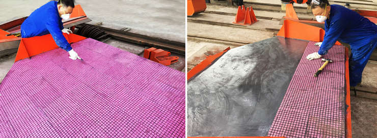 陶瓷橡膠復(fù)合襯板,我們需要將表面所有油漆全部打磨掉,前期處理任務(wù)重、時間長。