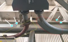 在收到客戶電話后,我司便立馬安排經(jīng)驗豐富的技術(shù)人員和業(yè)務(wù)經(jīng)理一同驅(qū)車前往客戶現(xiàn)場。經(jīng)過近10個小時的舟車勞頓,我們最終順利抵達目的地。第二天清早,在客戶的帶領(lǐng)下我們共同前往現(xiàn)場進行管道勘測。客戶表明此次待更換的石灰石輸送管道沒有詳細圖紙,具體尺寸還需經(jīng)過實地測繪才能得出。由于電廠管道線路排布比較特殊,石灰石輸送管道也通常位于架空橋架中,這給現(xiàn)場測繪帶來了巨大的挑戰(zhàn)。在對現(xiàn)場進行仔細勘察后,我們最終決定在待測的管線旁搭建人工作業(yè)平臺,以此為測繪人員提供安全的落腳支撐點。待所有準備工作完畢后,精城特瓷的技術(shù)員穿上高空防墜服,系上安全繩,在發(fā)電廠維修部蘇工的帶領(lǐng)下小心翼翼地登頂作業(yè)平臺進行管道測繪。