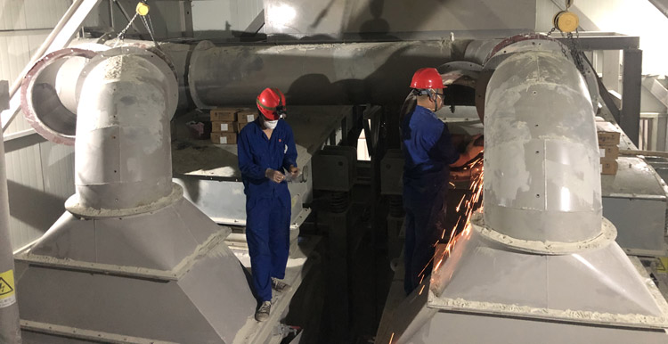 此次我司的安裝任務(wù)是某制砂廠φ1100、φ650除塵管道的彎、直管易磨損處安裝耐磨陶瓷和檢修平臺的搭建。由于海口市天氣炎熱,日平均氣溫均達(dá)40℃以上,停機(jī)時(shí)間短且在距離地面20多米以上的高空進(jìn)行焊接作業(yè),給現(xiàn)場施工帶來了不小的挑戰(zhàn)。于是我司便先安排制作二班班長趕赴施工現(xiàn)場,勘察作業(yè)環(huán)境及是否能夠完成此次檢修平臺的搭建工作。當(dāng)制作二班班長到達(dá)某制砂廠時(shí),已是當(dāng)日下午5點(diǎn)多了,客戶單位得知我司派人過來了,便安排廚房多炒幾個美味的菜品送至員工宿舍給我司(外)機(jī)械、安裝隊(duì)員吃。而當(dāng)客戶單位老板得知我司只安排一個人過來后,臉色轉(zhuǎn)變,立即拿起手中的手機(jī)與我司業(yè)務(wù)經(jīng)理進(jìn)行聯(lián)系,質(zhì)問我司這是什么意思?這就是我司所展現(xiàn)出來的實(shí)力?我司這樣的服務(wù)能力還怎樣合作下去?......當(dāng)天晚上,我司制作二班班長把某制砂廠的實(shí)際情況匯報(bào)給了楊總。第二天,楊總便立即組織(外)機(jī)械、安裝人員召開會議,會議強(qiáng)調(diào):既要保證人員的生命安全,又要在規(guī)定時(shí)間內(nèi)“保質(zhì)、保量”的完成任務(wù)。當(dāng)天,我司(外)機(jī)械、安裝隊(duì)員安全到達(dá)海口市美蘭機(jī)場后,未做停留,立即趕往某制砂廠。到達(dá)某制砂廠后,我司(外)機(jī)械、安裝隊(duì)員一同前往施工現(xiàn)場,勘察作業(yè)環(huán)境,核實(shí)工作任務(wù),預(yù)估完成時(shí)間。
